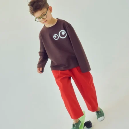 Wygodne i stylowe spodnie, uszyte w 100% z miękkiej, oddychającej bawełny. Delikatny materiał zapewnia komfort noszenia przez cały dzień – zarówno podczas zabawy, jak i odpoczynku. Luźny krój i elastyczna, regulowana gumka w pasie gwarantują swobodę ruchów. Idealne na co dzień, do szkoły czy rodzinne wyjścia. Sprawdzą się w zestawie […]