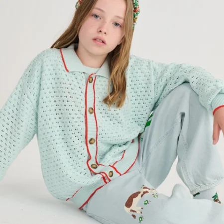 418,00 złJasnoniebieski kardigan o luźnym kroju, wykonany w 100% z bawełny organicznej. Zaprojektowany z płaskim kołnierzem, długimi rękawami i obniżoną linią ramion, okrągłym dekoltem oraz zapinany na guziki z przodu. Wykończony ściągaczami przy mankietach i u dołu, z delikatnym haftem i ażurowym splotem, łączy wygodę z subtelnym, eleganckim detalem. Wyprodukowany w […]