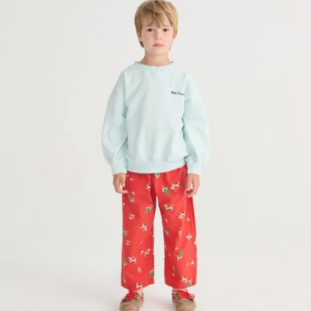 285,00 złJasnoniebieska bluza z dzianiny fleece o luźnym kroju, wykonana w 100% z bawełny organicznej. Zaprojektowana z okrągłym dekoltem, ściągaczami przy mankietach i u dołu bluzy oraz delikatnym haftem, który dodaje subtelnego uroku. Miękka i przyjemna w noszeniu, idealna na co dzień. Wyprodukowana w Portugalii. Skład:100% bawełna organiczna