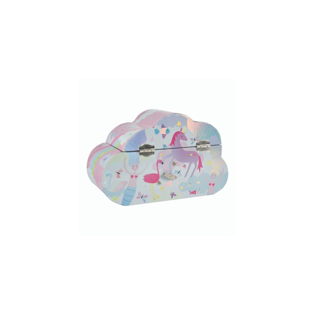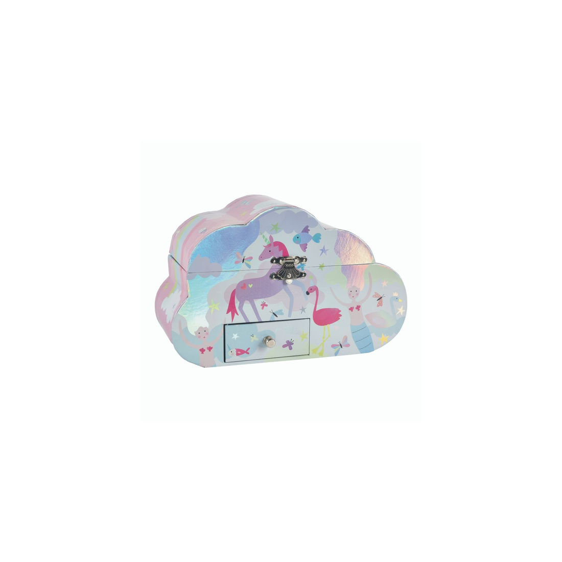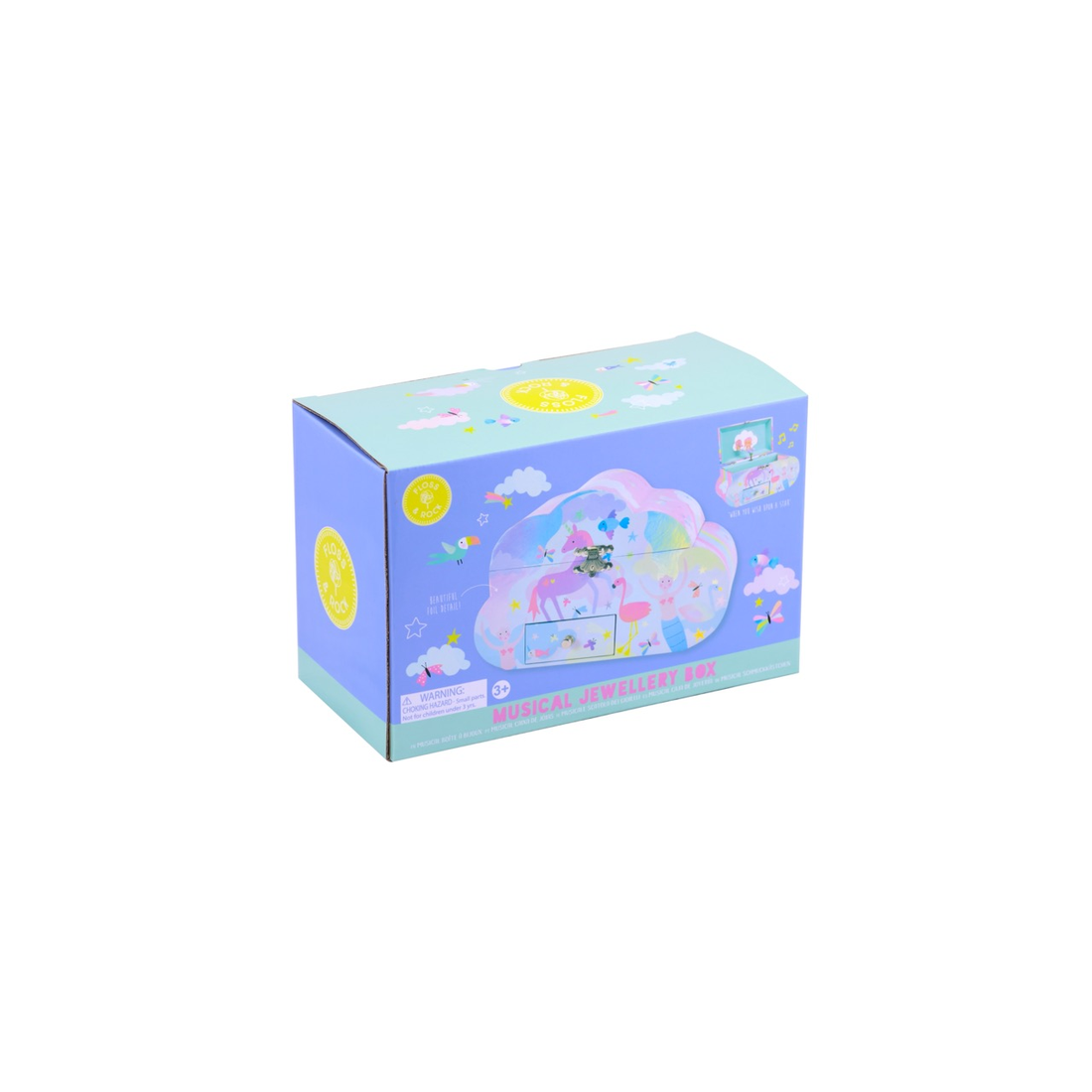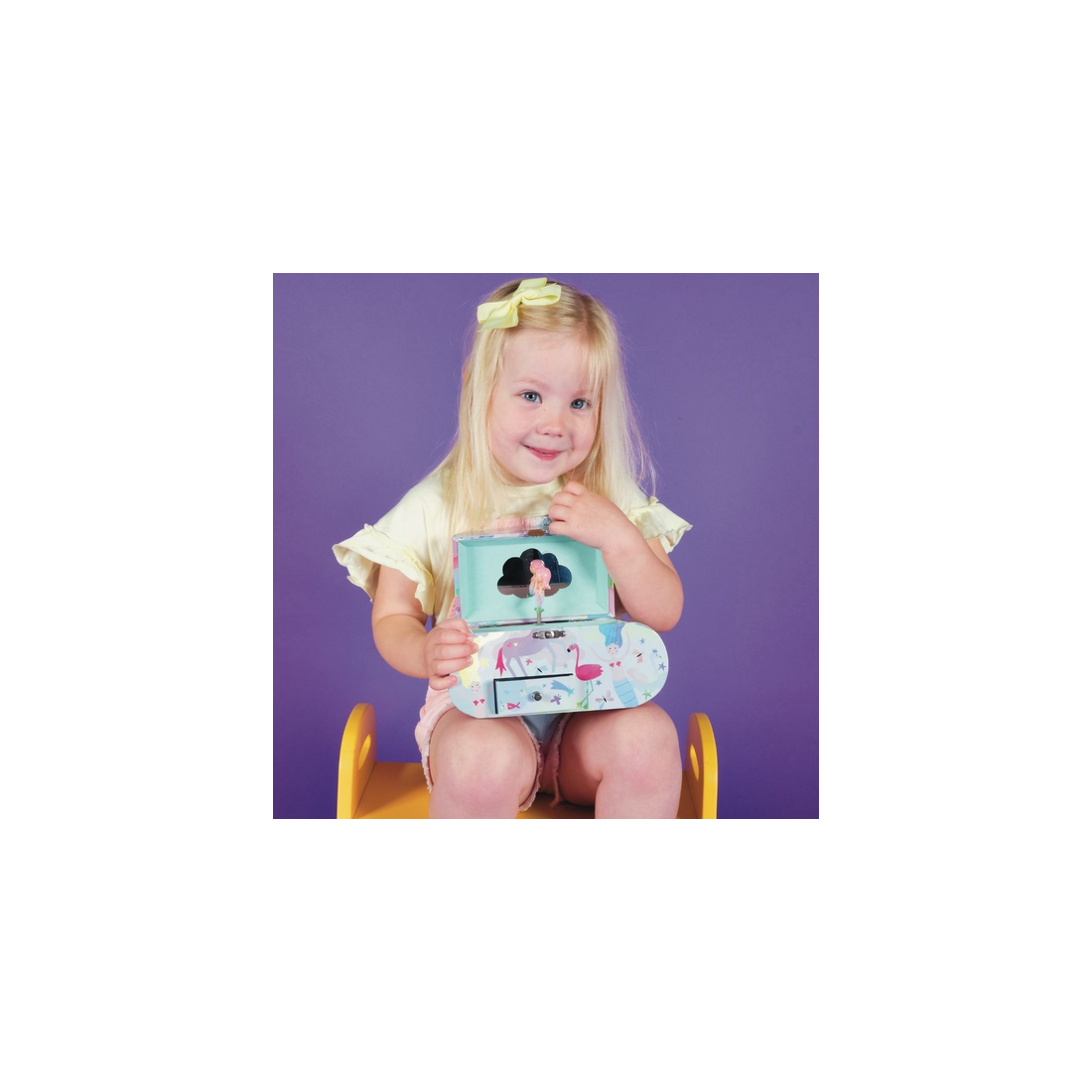 Pięknie zaprojektowana muzyczna szkatułka marki Floss & Rock to doskonałe miejsce do przechowywania dziecięcej biżuterii, gumek do włosów, spinek i innych cennych drobiazgów. Ozdobiona wspaniałymi ilustracjami jednorożców, flamingów, motyli i syren z holograficznymi, lśniącymi włosami i nie tylko. Nakręć kluczyk, a po otwarciu szkatułki zobaczysz magiczną syrenkę wirującą przed lustrem, podczas gdy pozytywka gra delikatną i przyjemną melodię. Szkatułka posiada poręczne wnętrze oraz małą szufladkę, a całość wykonana jest z wielką dbałością o szczegóły. Zapakowana w ozdobne pudełko, idealnie sprawdzi się jako prezent dla dziewczynek.