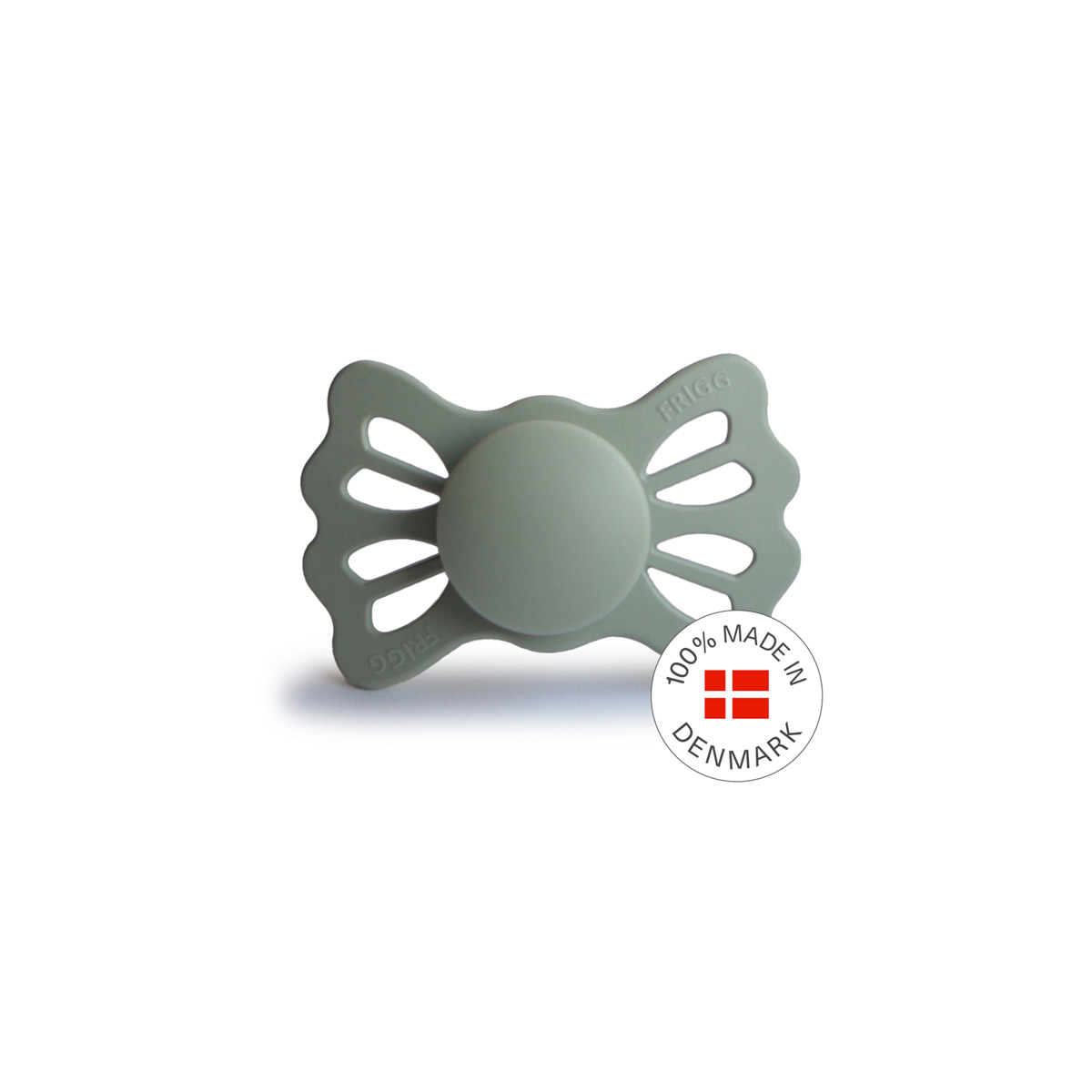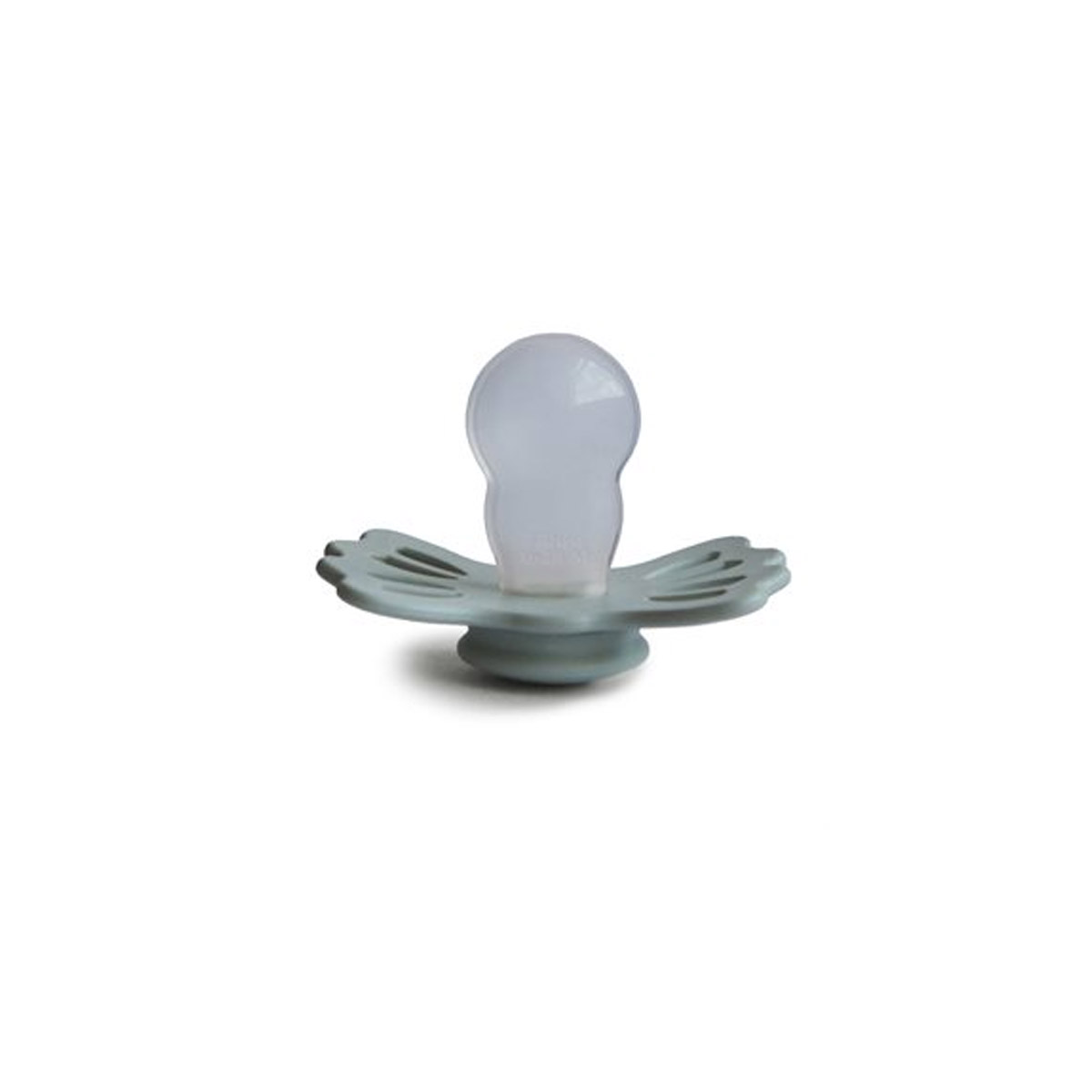 Smoczek FRIGG Lucky jest inspirowany czterolistną koniczyną. Tarcza ma faliste krawędzie, które mają kształt jej liści, odbijają się one również na tarczy, funkcjonując jako otwory przepuszczające powietrzne. W centrum znajduje się okrągły środek, który podkreśla elegancję smoczka.