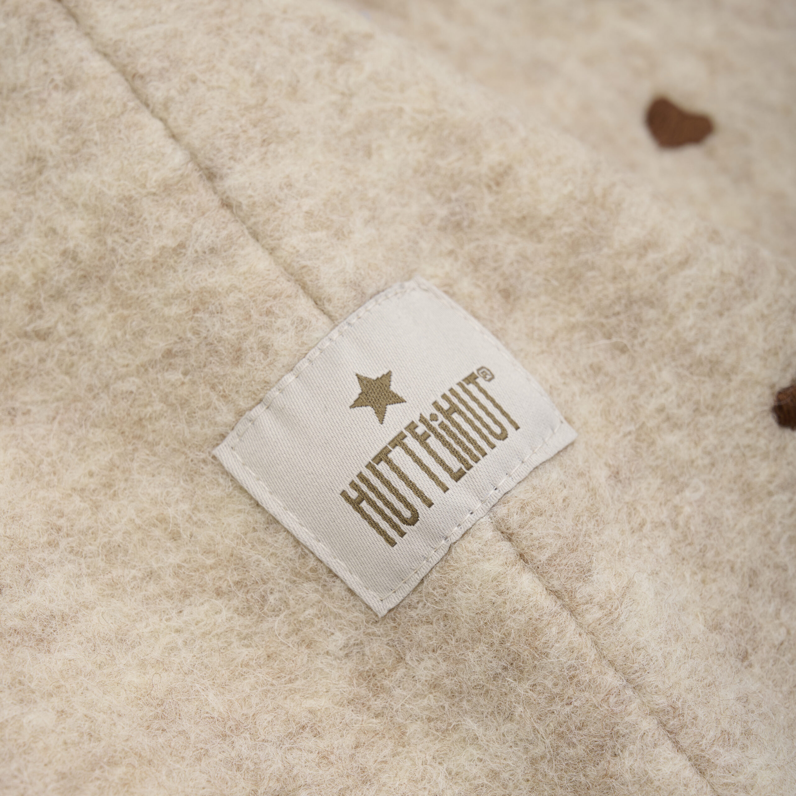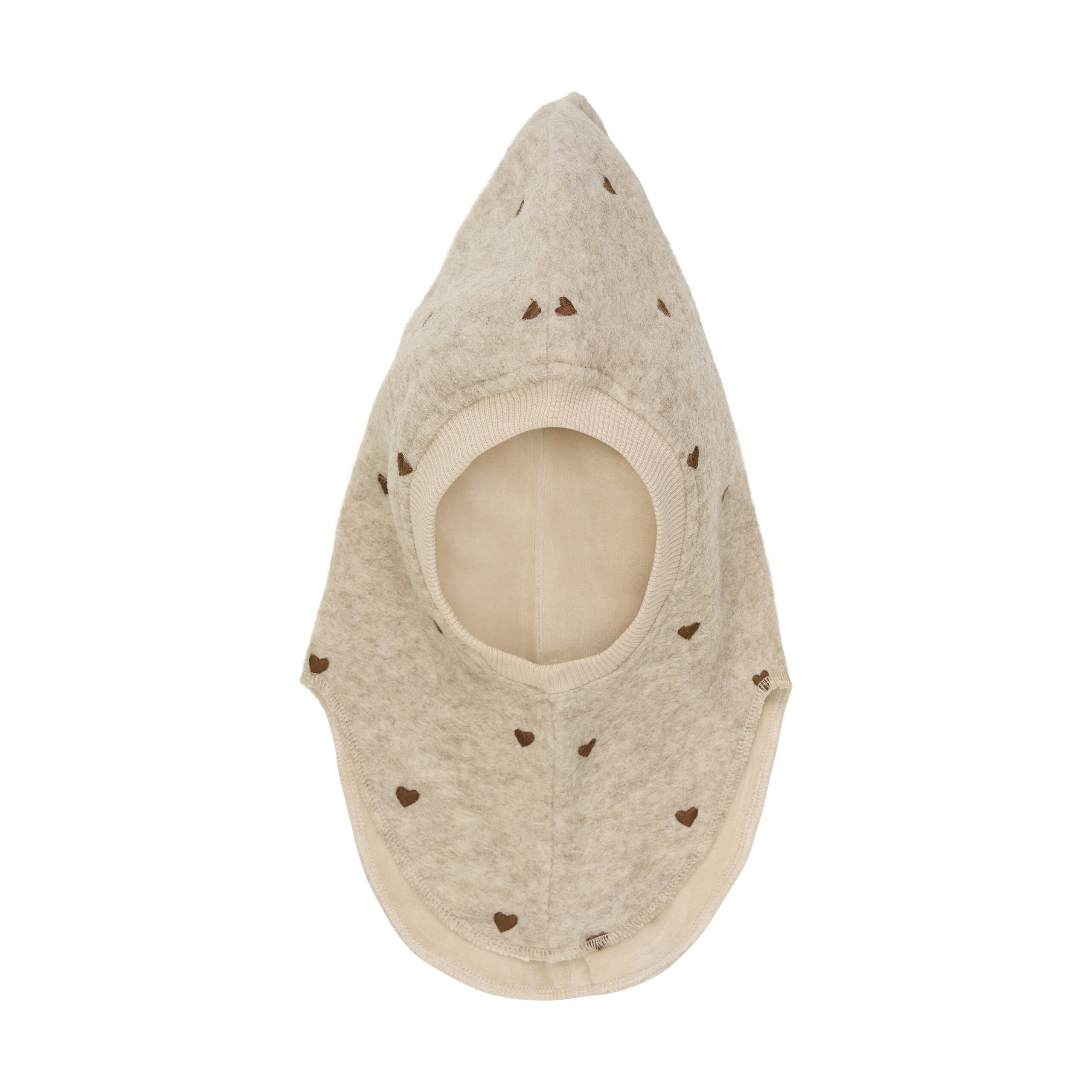Urocza kominiarka HUTTEliHUT wykonana z miękkiej mieszanki wełny, zdobiona delikatnymi haftami na całej powierzchni. Model ma charakterystyczny, spiczasty kształt kapturka, który nadaje mu wyjątkowy wygląd.