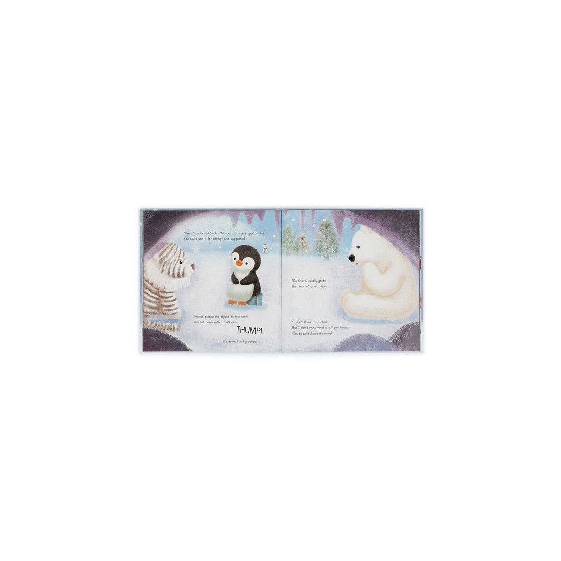 „Peanut Penguin’s Perfect Present” z zimowej kolekcji Jellycat London to pięknie ilustrowana książeczka w twardej oprawie, która wprowadza najmłodszych w zimowo-świąteczny klimat. Bohaterką opowieści jest sympatyczna pingwinka Peanut, która podczas spaceru po lodzie znajduje w śniegu tajemniczy, błyszczący przedmiot. Zafascynowana znaleziskiem, próbuje dowiedzieć się, czym ono właściwie jest. W poszukiwaniu odpowiedzi rozmawia z przyjaciółmi i odkrywa, że prawdziwa radość nie płynie z posiadania, lecz z dzielenia się z innymi. To ciepła i mądra opowieść o przyjaźni, hojności i znaczeniu wspólnego przeżywania Świąt Bożego Narodzenia – idealna do wspólnego czytania z dzieckiem w zimowe wieczory.