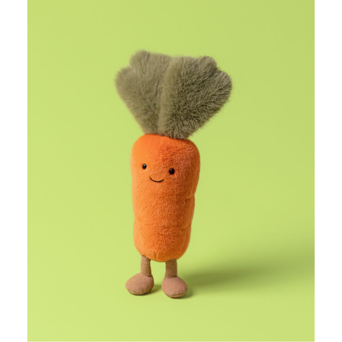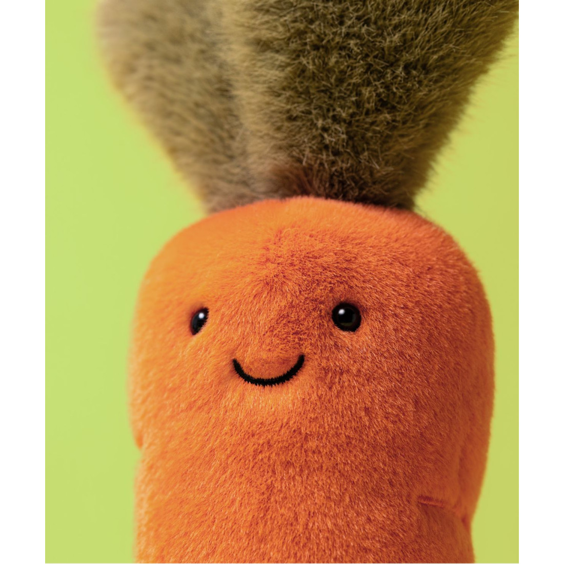 Zabawna Marchewka marki Jellycat to bardzo miły i przyjemny w dotyku pluszak. Ma futerko w kolorze marchewkowym, mięciutką naciową fryzurę, miłą buźkę i bardzo mięciutki brzuszek. Można się z nią bawić i przytulać. Pluszak został uszyty z najwyższej jakości, trwałych i bezpiecznych dla dzieci materiałów.