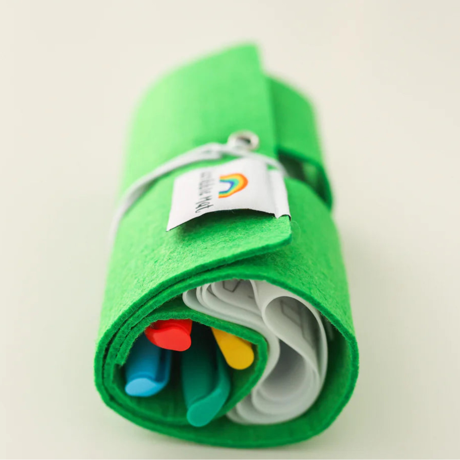 4 × zmywalne mazaki (czerwony, żółty, ciemnozielony, jasnoniebieski)