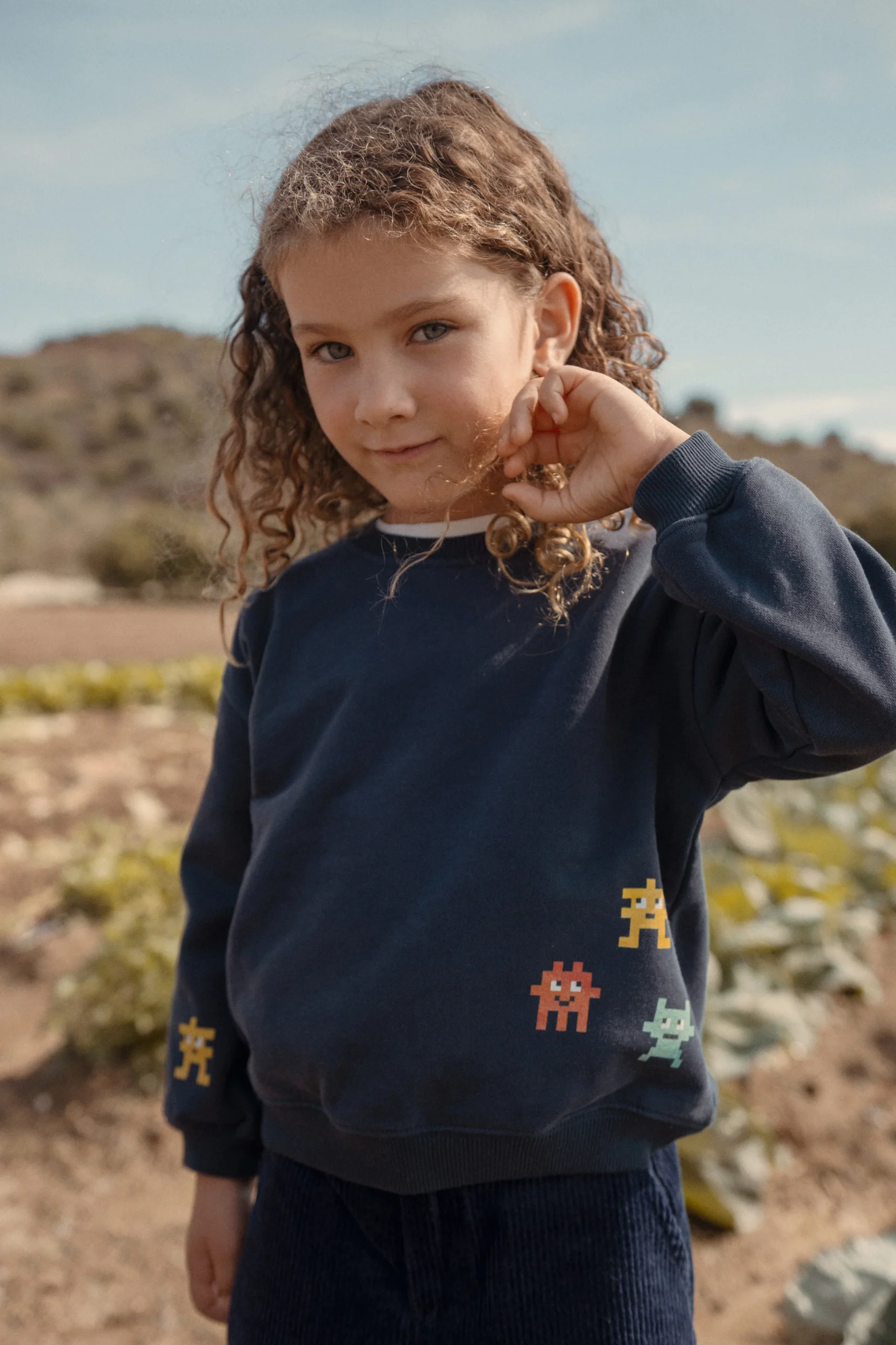 Bluza ozdobiona jest uroczymi, kolorowymi nadrukami, wykonanymi przy użyciu ekologicznych atramentów na bazie wody, zgodnych z wymogami certyfikatów GOTS 6.0 oraz OEKO-TEX® 100 (Klasa I i II).
