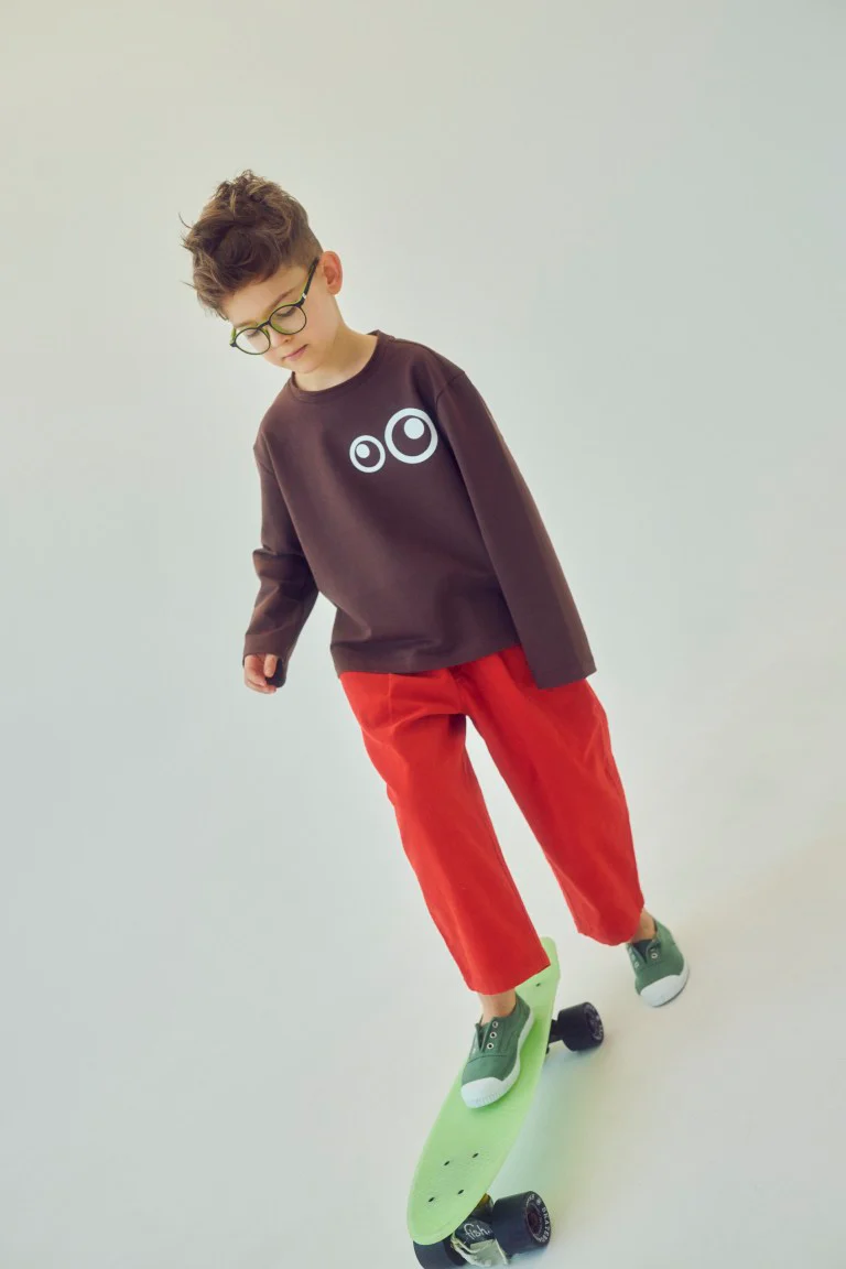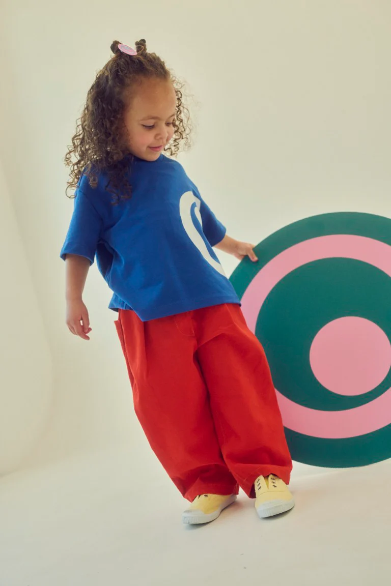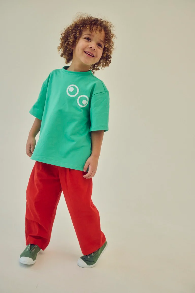 Wygodne spodnie dziecięce wykonane z miękkiej, naturalnej bawełny, która jest przyjemna w dotyku i delikatna dla skóry dziecka. Materiał zapewnia komfort noszenia przez cały dzień – zarówno w domu, jak i podczas zabawy.