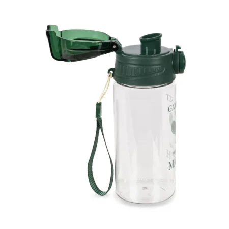 Butelka na wodę z wygodną nakrętką typu „click-up”. Idealna w podróży – wystarczy jedno naciśnięcie, aby otworzyć butelkę i napić się, oraz jedno naciśnięcie, aby ją zamknąć, utrzymując zawartość w czystości i bez wycieków. Wykonana z lekkiego materiału i wyposażona w pasek do przenoszenia. Odpowiednia dla dzieci od 18 miesięcy.