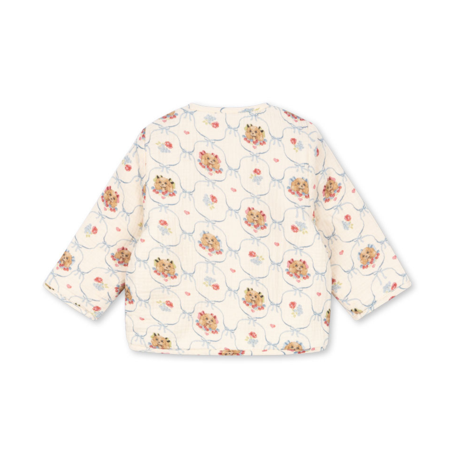 Miękka i wygodna kurtka wykonana z delikatnego muślinu bawełnianego. Zapinana na dekoracyjne guziki w stylu rogowym, które dodają jej klasycznego charakteru. Idealna jako lekka, a jednocześnie ciepła warstwa na chłodniejsze dni.