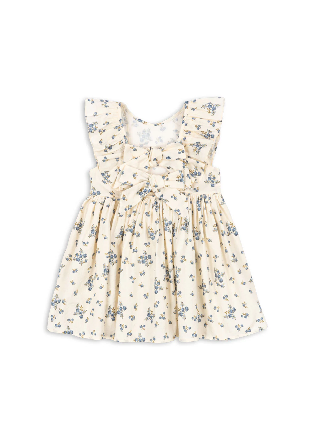 Model wyróżnia się ozdobnymi falbankami przy rękawach oraz kokardą z tyłu, które nadają sukience wyjątkowy, elegancki charakter i sprawiają, że pięknie prezentuje się w każdej stylizacji.