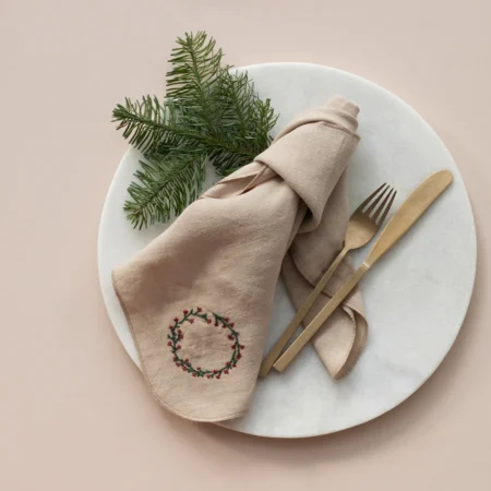 Każdy świąteczny stół będzie potrzebował pięknej serwetki. Ta serwetka jest wykonana z miękkiego lnu i ma piękny haft. Ilustracja jest ręcznie rysowana przez Dorthe Mailil. Serwetka ma wymiary 44 x 44 cm.