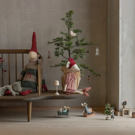 W Danii jak i w Polsce tradycją jest wręczanie dzieciom małego prezentu w ostatnie 4 niedziele przed Wigilią Bożego Narodzenia. Kalendarz adwentowy Maileg posiada 4 miejsca do zapinania prezentów i posiada z tyłu haczyk do zawieszenia. Wysokość: 115 cm