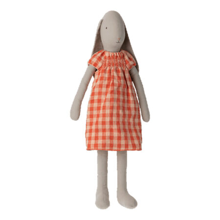 Kolekcja królików jest wykonana z miękkiej, naturalnej tkaniny lniano-bawełnianej, która zapewnia piękny dotyk i wygląd. Ten królik nosi śliczną sukienkę