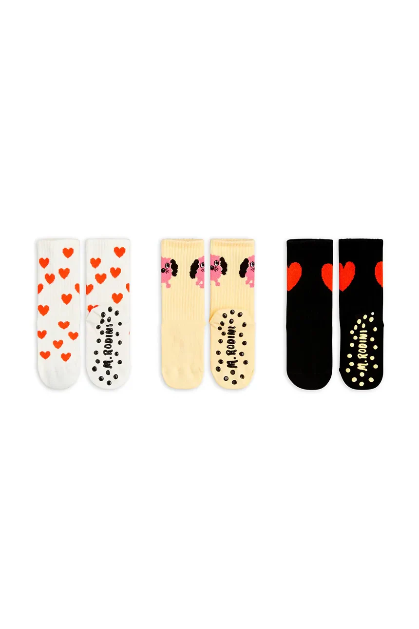 Długie skarpetki dziecięce z kolekcji Mini Rodini, wykonane z elastycznego, wzorzystego materiału. W zestawie znajdują się trzy pary. Model zapewnia wysoki komfort noszenia dzięki oddychającej tkaninie z dużą zawartością bawełny.