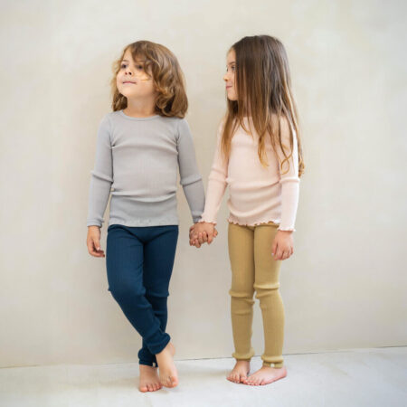 Bluzka z długim rękawem i okrągłym dekoltem z miękkiej wełny merynosów. Ta bluzka jest bezszwowa i ma falbaniasty dół i mankiet, co nadaje jej piękny kobiecy wygląd. Używaj jej jako dodatkowej warstwy termicznej lub z legginsami Arona, aby uzyskać ciepłą i miękką piżamę. Gwarantujemy, że Twoje dziecko będzie ciepłe i przytulne przez całą zimę.