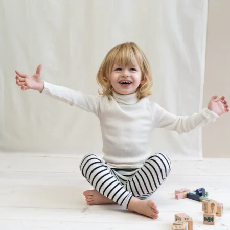Bluzka z długim rękawem i okrągłym dekoltem z miękkiej wełny merynosów. Ta bluzka jest bezszwowa i ma ściągacz z podwójnym ściegiem, który zapewnia piękny, prosty wygląd po założeniu. Nadaje się dla chłopców i dziewczynek. Używaj jej jako dodatkowej warstwy termicznej lub z legginsami Arona, aby uzyskać ciepłą i miękką piżamę. Gwarantujemy, że Twoje dziecko będzie ciepłe i przytulne przez całą zimę.