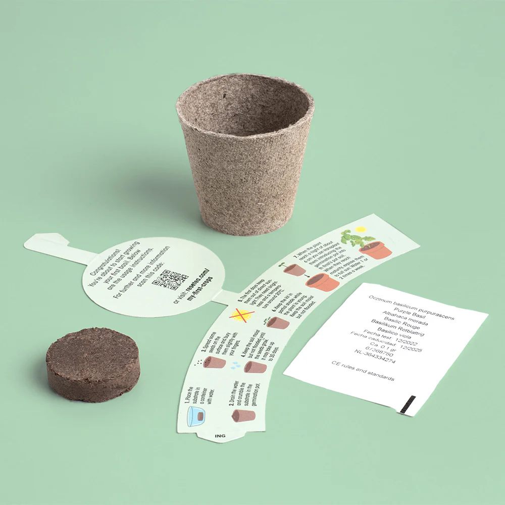 - Elementy: Biodegradowalna doniczka, podłoże kokosowe, instrukcja.