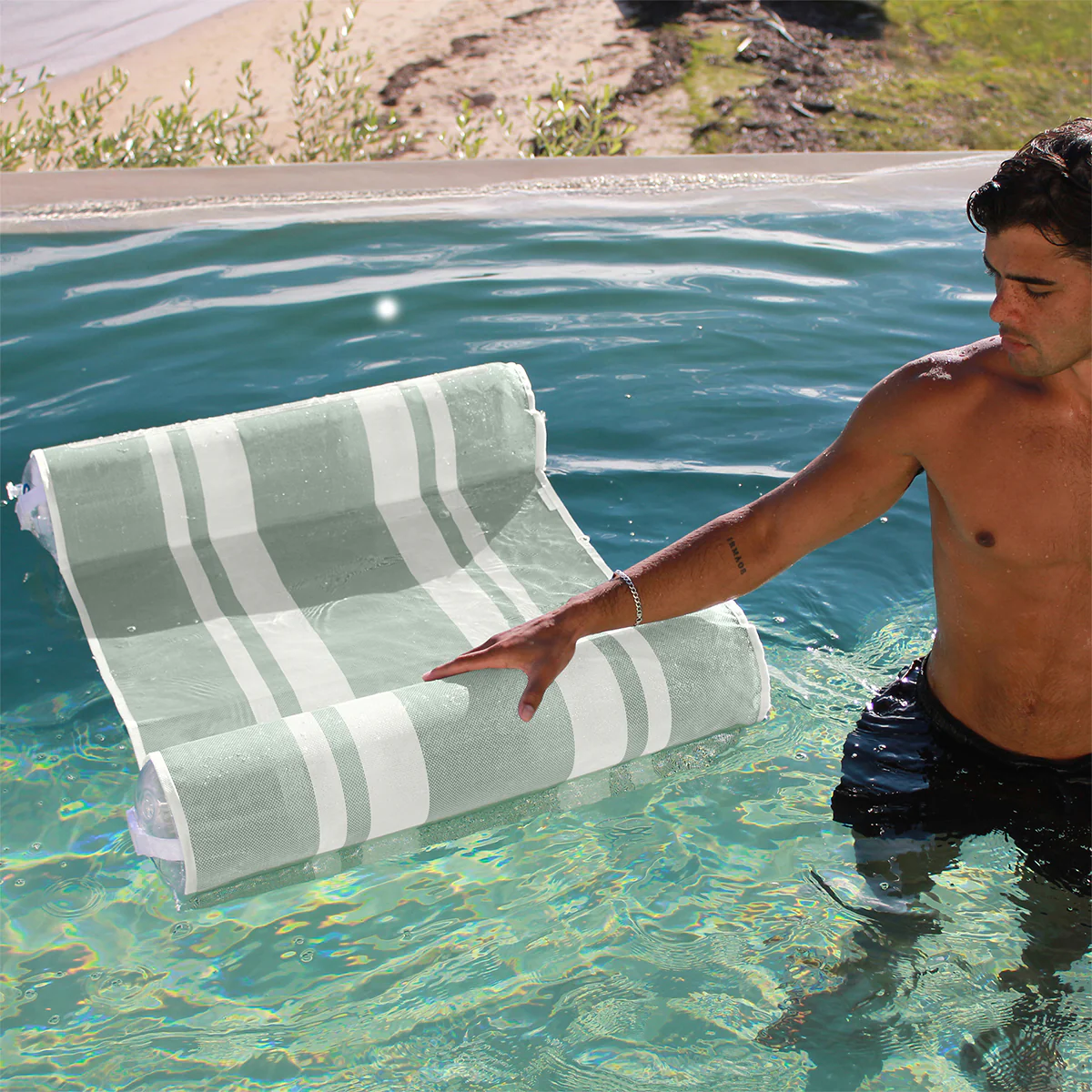 - Siatka Textilene, wałki bolsterowe na obu końcach i tyle wolnego czasu, ile tylko chcesz. Hamak Seagrass chłodzi, stabilizuje i odpręża – do siedzenia lub leżenia na wodzie.