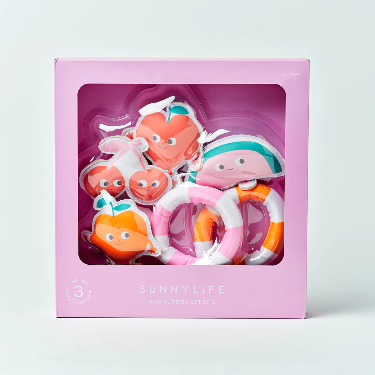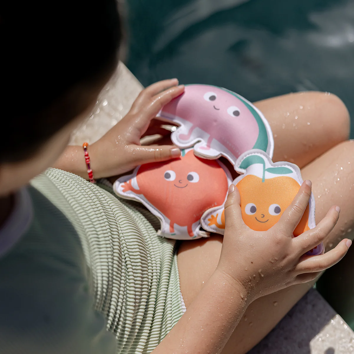 Trzy syrenki z naturalnego kauczuku, które czekają na dnie basenu – zestaw Melody the Mermaid SUNNYLiFE zachęca dzieci do nurkowania w bajkowy i bezpieczny sposób.