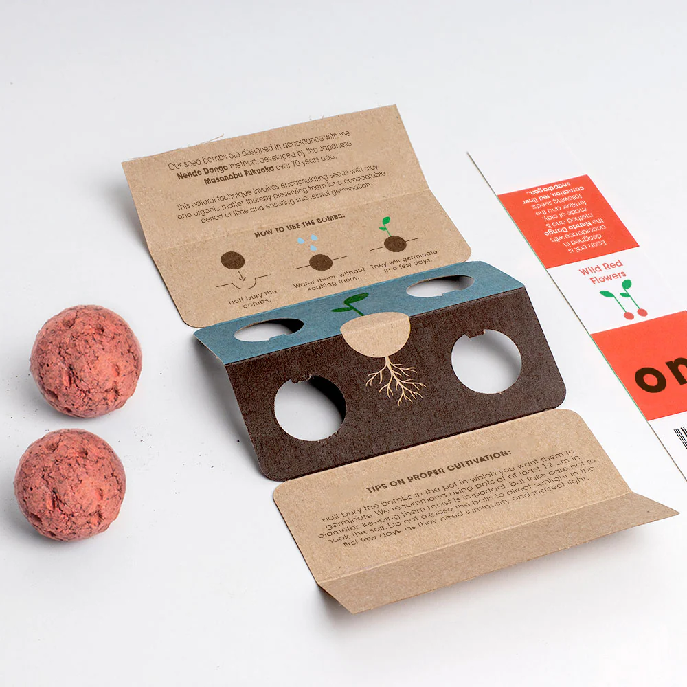 - Zawartość: 2 czerwone bomby nasienne (Mak polny, Len czerwony, Koniczyna krwista).