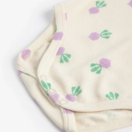 129,00 złMiękkie body z krótkim rękawem. Wykonane w 100% z organicznej bawełny pointelle z ozdobnym wykończeniem typu picot. Zaprojektowane z napami w kroku oraz na ramieniu, co ułatwia ubieranie i zmianę pieluszki. Certyfikat GOTS (Organic), certyfikowane przez CU1094701.