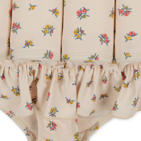 275,00 złStrój kąpielowy z elastycznego materiału z falbankami. Zawiera wyjmowane pianki wypornościowe, które pomagają nowym pływakom utrzymać równowagę w wodzie. Wykonane w 80% z poliestru pochodzącego z recyklingu i 20% elastanu Strój do 18m posiada rozpinanie w kroku na pampersa.